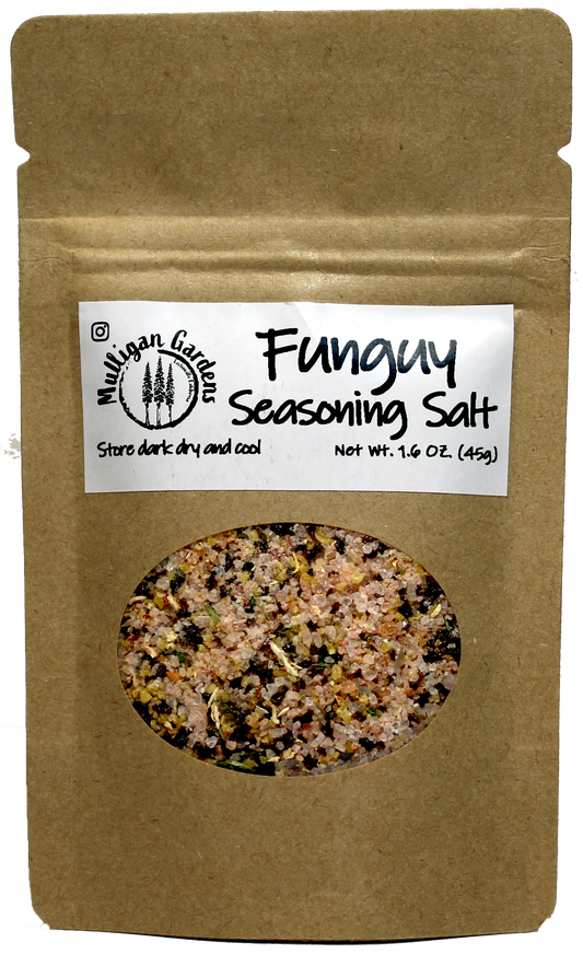 Meet the Funguy, our Mushrooms infused seasoning salt. Made with our farm grown and dried blue oyster mushroom's, herbs, and spices this seasoning salt will bring a fantastically funky, fungi flavor to all your favorite dishes.